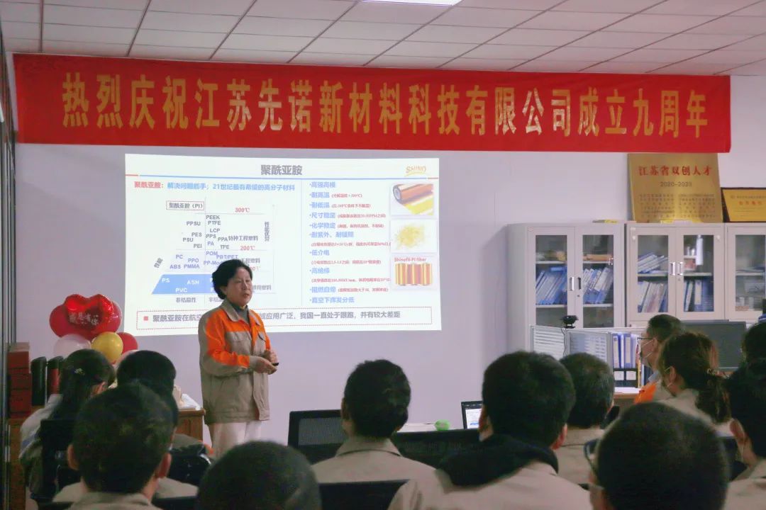 今天是一個值得紀念的日子,慶典會議現(xiàn)場安排井然有序,董事長武德珍首先作會議致辭,并做了專題《先諾創(chuàng)新發(fā)展之路與未來》的報告。專題圍繞“高性能聚酰亞胺纖維與先諾公司”、“公司創(chuàng)新發(fā)展歷程與體會”、“公司未來發(fā)展規(guī)劃與思考”等方面介紹,進一步加深員工對公司發(fā)展歷程、產品及公司文化的認識。